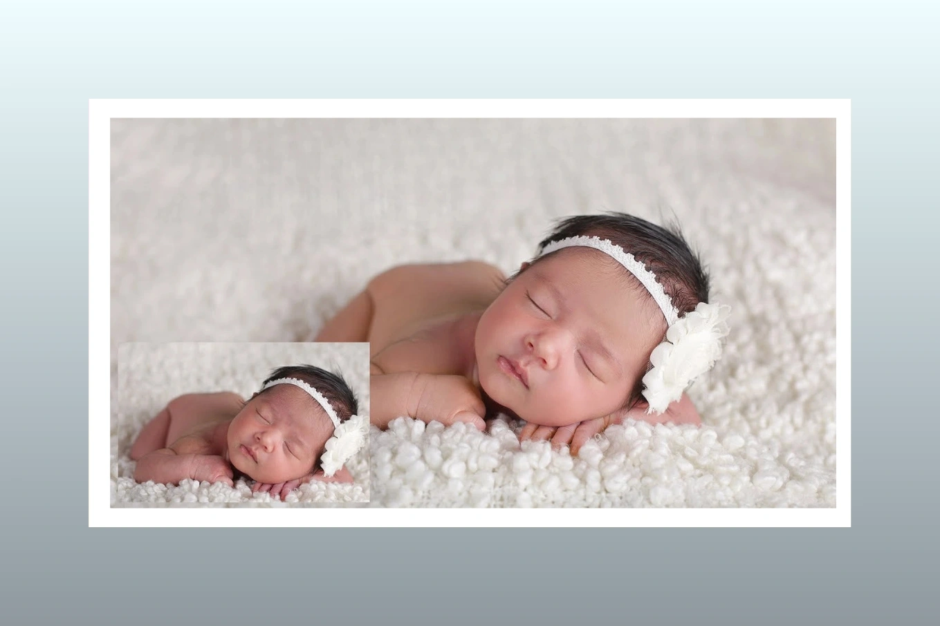 - Retains the newborn’s natural skin texture, avoiding the “plastic” appearance that sometimes results from aggressive smoothing.